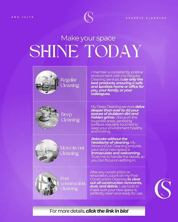 Perfect for weekly, bi-weekly, or monthly maintenance. This service keeps your home consistently clean and organized. Includes: • Dusting all surfaces • Vacuuming & mopping floors • Kitchen cleaning (countertops, stove surface, sink) • Bathroom cleaning & sanitizing • Trash removal • General tidying
